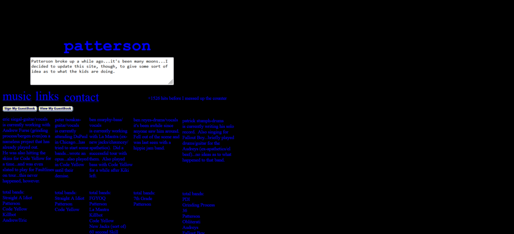 | Website | listen.to/patterson, patterson.cjb.net, geocities.com/milopatterson, http://mp3-2003.computer-legacy.com/artists/128/patterson.html |
