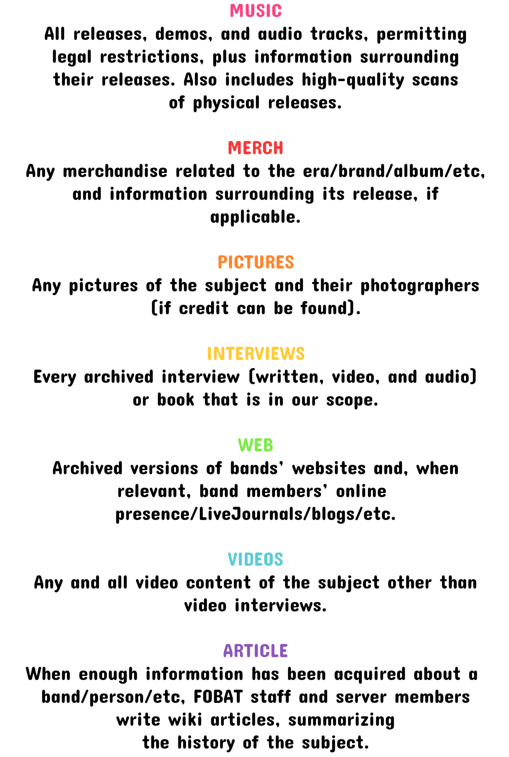 Any and all bands covered under FOBAT’s scope for which we have collected content.